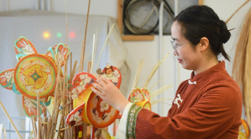 1月5日,在中国邮政集团公司扬州分公司邗城邮政支局,一位女士展示《丙午年》特种邮票。