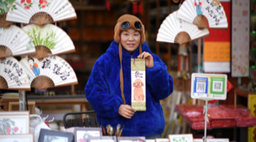 福州西湖公园举办的“周末戏相逢”公益性演出现场同步开设文创市集特色摊位(1月10日摄)。