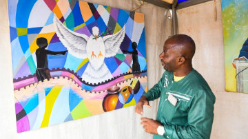 1月21日,在山东省青岛市城阳区河套街道汇海社区泥塑非遗工坊,刘梅铃通过网络直播销售。