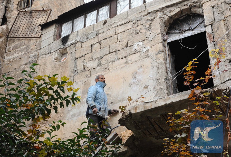 ALEPPO, Syria, Dec. 21 (Xinhua) -- In the old part of Aleppo city, rubbles fill the horizon. Destroyed buildings stand witness to a war that had ripped the old city apart before it ended in December 2016 with the army defeating the rebels in the eastern part of Aleppo.