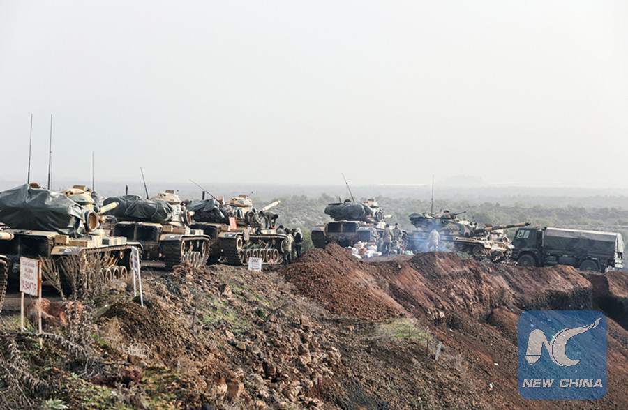 Turkish army tanks were seen in Afrin, Syria, on Jan. 22, 2018. Turkey launched on Jan. 20 "Operation Olive Branch" on the ground to oust Kurdish militia from Syria's Afrin. (Xinhua)