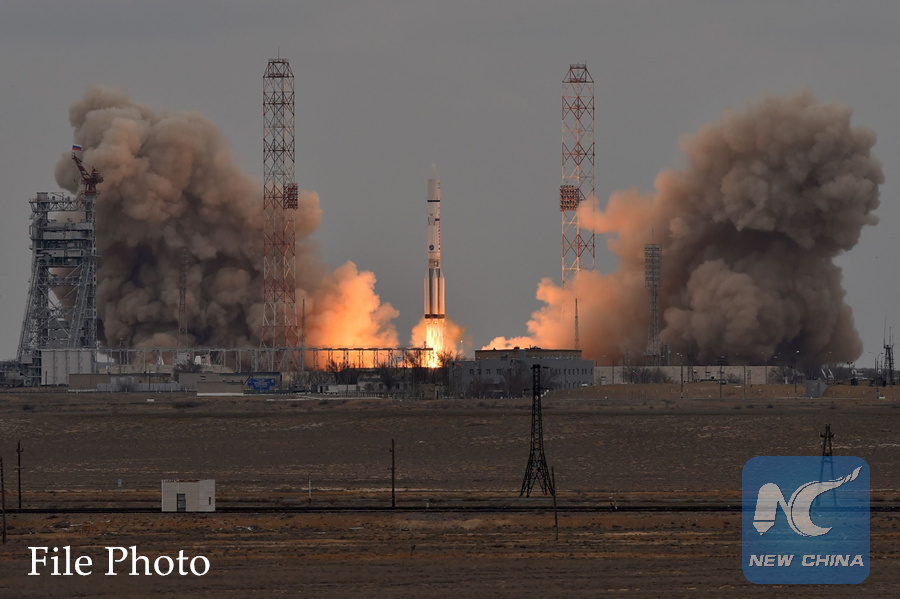 A Russian Proton-M rocket carrying the ExoMars 2016 spacecraft blasts off from the launch pad at the Russian-leased Baikonur cosmodrome on March 14, 2016. (AFP FILE PHOTO)