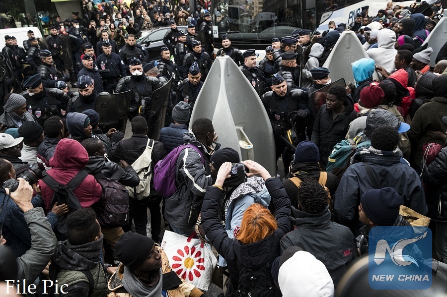 In this file photo taken on Nov. 4, 2016, French police were evacuating migrants from the camp of the 19th district in Paris. (Xinhua)