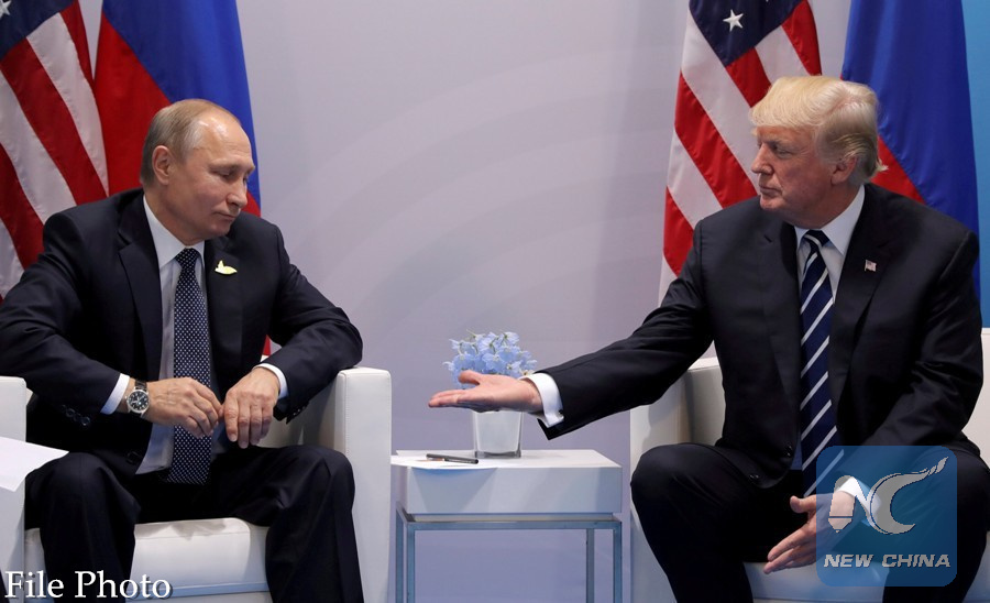 File Photo: U.S. President Donald Trump meets with Russian President Vladimir Putin during their bilateral meeting at the G20 summit in Hamburg, Germany, July 7, 2017. (Xinhua/REUTERS)