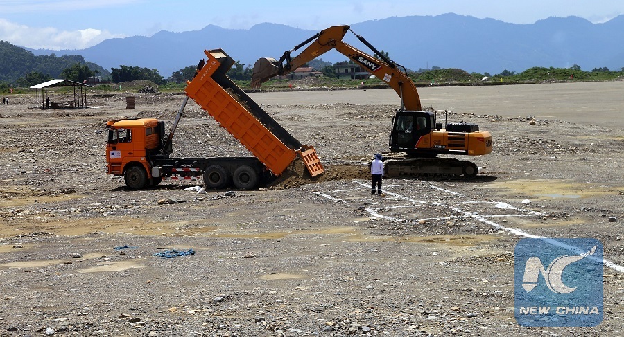 People work at the construction site of international airport in Pokhara, Nepal, July 19, 2018. (Xinhua/Sunil Sharma)