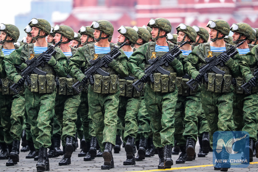 Russian servicemen march across the Red Square during the Victory Day parade in Moscow, Russia, on May 7, 2019. (Xinhua/Bai Xueqi)