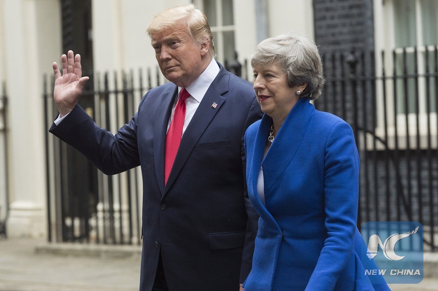 LONDON, June 4 (Xinhua) -- British Prime Minister Theresa May said Tuesday that she and U.S. President Donald Trump wanted an ambitious trade agreement after Brexit.