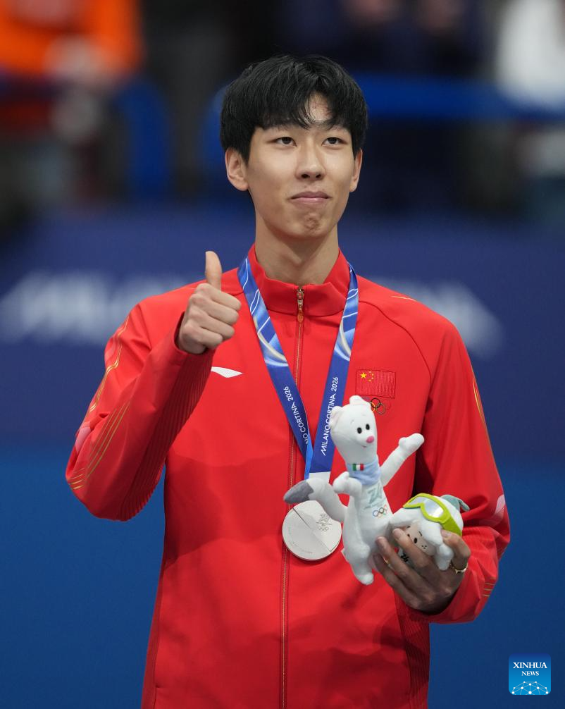 MILAN, Feb. 12 (Xinhua) -- Chinese short track speed skater Sun Long clinched silver in the men's 1,000 meters event at the Milan-Cortina 2026 Olympic Winter Games on Thursday, earning the first Olympic medal of his career.