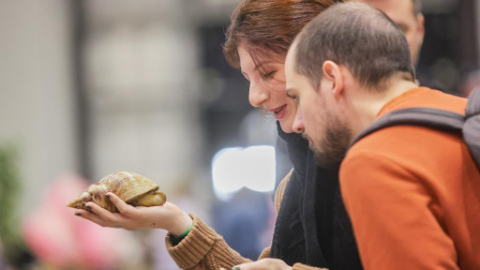 People watch light show at Conservatory of Flowers in Golden Gate Park of San Francisco