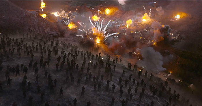 該預告片以史詩級的手法,全景式展示了長津湖戰役的全貌:從美軍仁川登陸、悍然越過三八線進犯中朝邊境,到志愿軍跨過鴨綠江出國作戰,抗美援朝保家衛國。從長津湖戰役全線爆發、我志愿軍戰士重創敵人,到美軍兵敗后退、撤出興南港……在這過程中,交戰雙方將領輪番登場,兩軍陣仗初現端倪。美軍裝備之強大、我志愿軍斗志之昂揚,都得到了體現。
