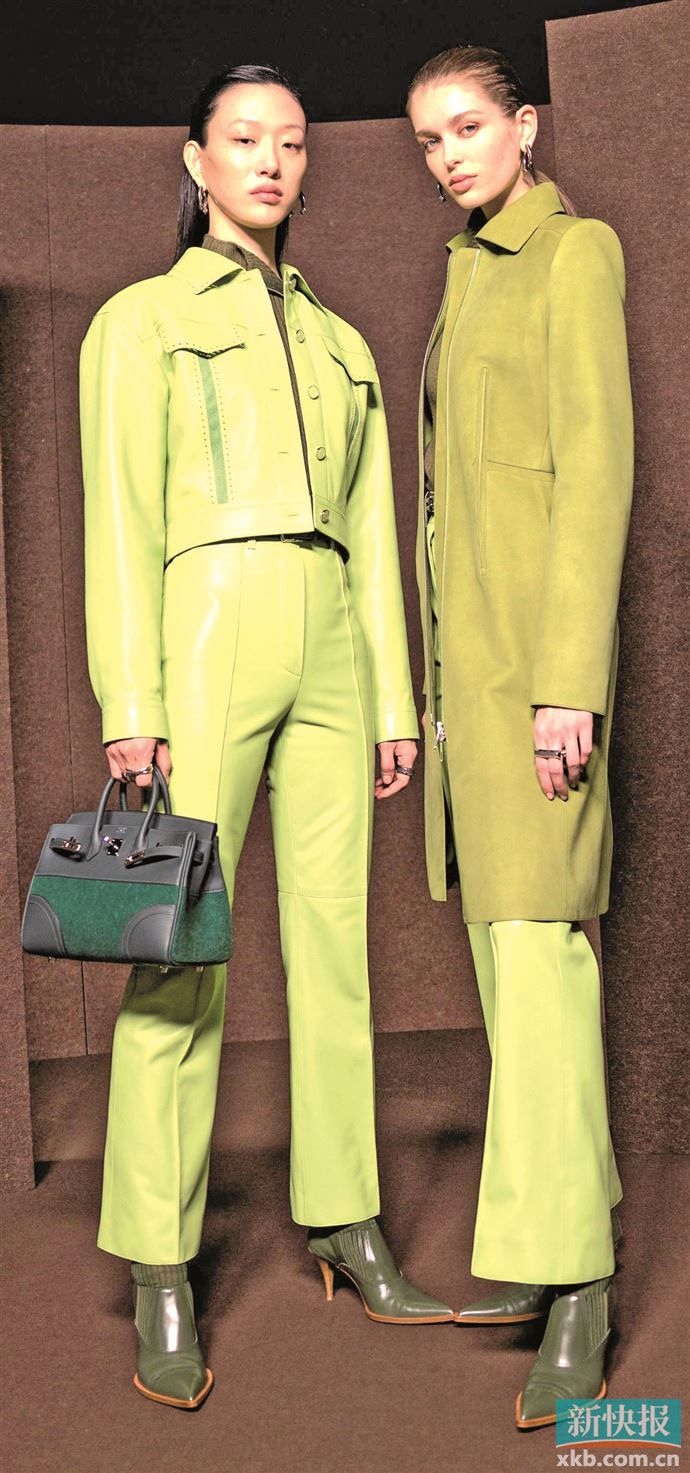 色彩上除棕色系作为本季主流色彩霸屏外,也辅以更丰富多彩的选择,不同色彩皮革单品的层次混搭,进一步提升全身造型的吸睛度。