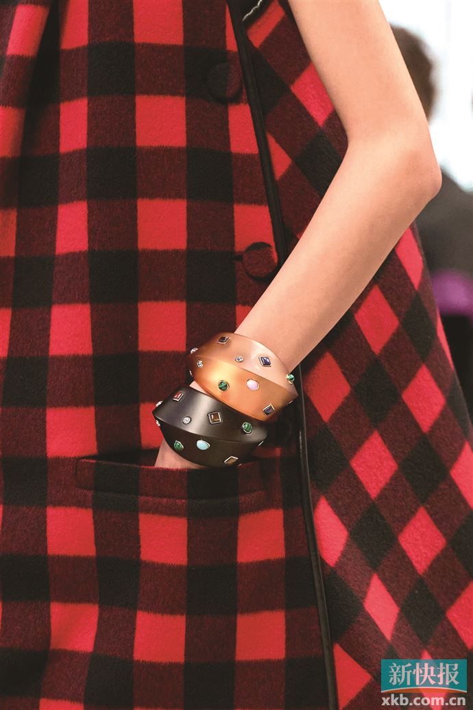 颈部配饰以皮绳项链为核心,绳子是皮革材质,偏手工感,比常规金属链多几分返璞归真。亦有将上世纪70年代风格皮革与金属吊坠结合的、让质感间的碰撞带来有格调的时髦感;还有用小牛皮嵌件打造的层叠颈链,搭高领毛衣时露出2到3厘米的链条让整体穿搭更显精致。