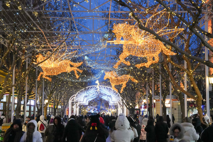 2026年1月8日,游客在哈尔滨中央大街游玩。新华社记者 王建威 摄