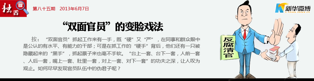 狡猾狐貍常見,好獵手難尋! “臺上反腐敗,臺下搞腐敗”、“左手貪現(xiàn)金、右手拿先進”,官場上還有多少這樣雙面官員?其實,不怕官員演技高,就怕觀眾看不穿,更怕有人明明看穿了,卻裝作看不見。再狡猾的狐貍也斗不過聰明的獵手,前提是獵手愿意捕獵狐貍。