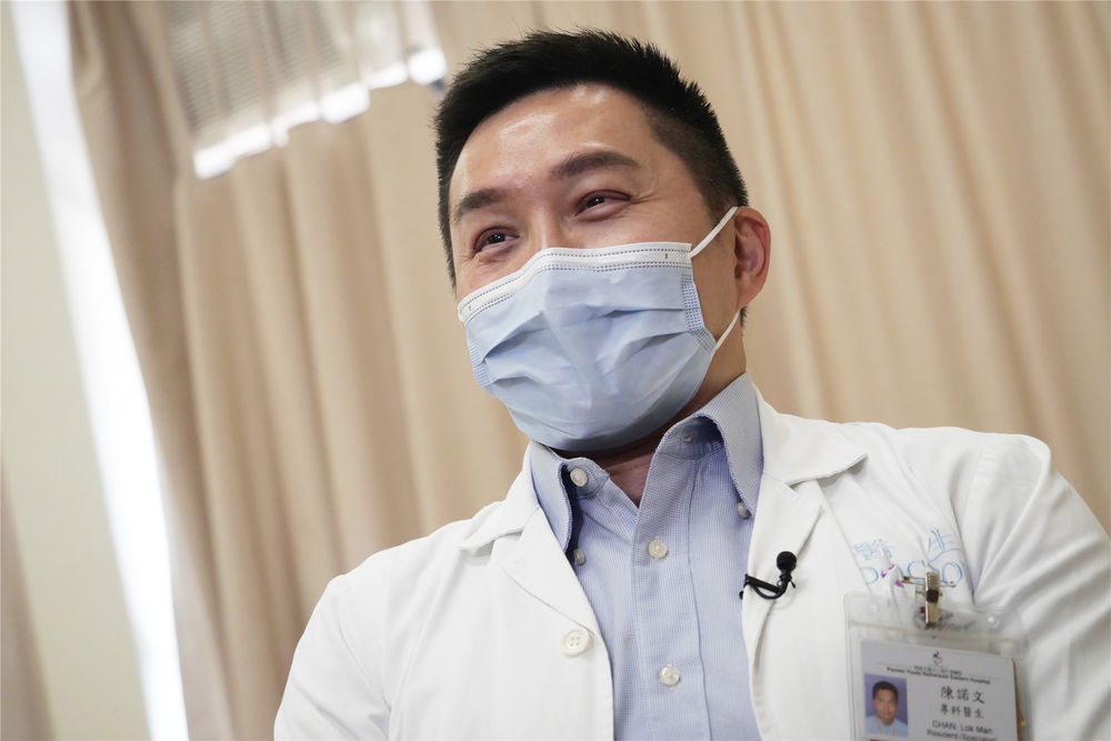 在香港東區醫院,“氣球大夫”陳諾文醫生接受新華社記者專訪。(新華社記者 王申 攝)