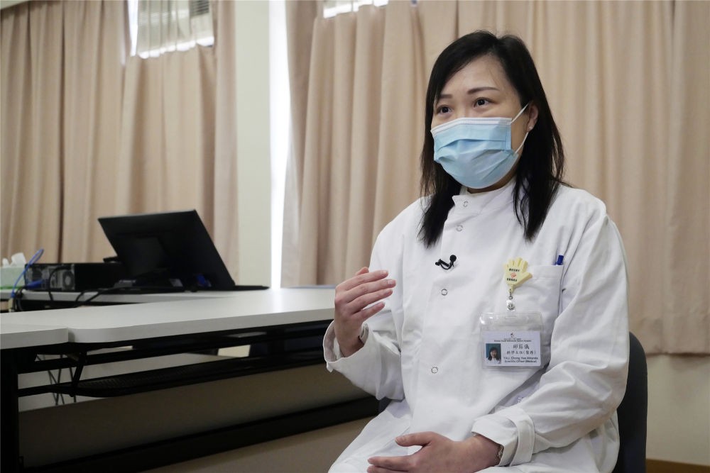 在香港東區醫院,港島東醫院聯網臨床病理學部科學主任(醫務)邱莊儀接受新華社記者專訪。(新華社記者 王申 攝)
