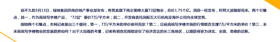 不過,一個市場現(xiàn)象是可喜的。據(jù)戴德梁行的數(shù)據(jù)統(tǒng)計,2014年,南京高端寫字樓物業(yè)的供應(yīng)量將超過35萬平方米,主要集中于河西和南站區(qū)域,新街口和鼓樓核心區(qū)供應(yīng)量不足7萬平方米。