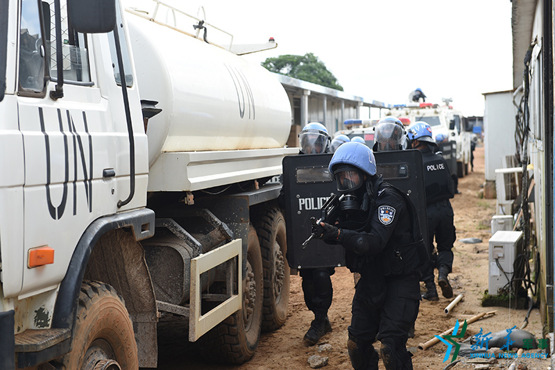????中國第四支駐利比里亞維和警察防暴隊當地時間6月1日展開應急處突演練,提升防暴隊安防等級。演練圍繞營門遇襲、襲擾維和部隊及人員等內容展開,提高防暴隊靈活機動和應對突發性事件的能力。(鄭志剛、諸龍珠)