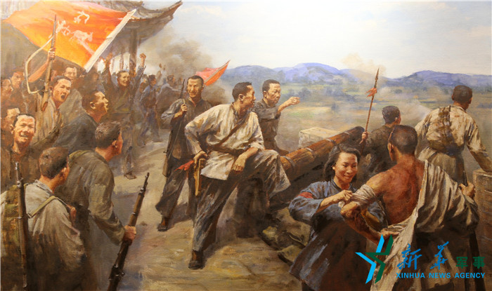 1927年11月14日,黃麻起義爆發(fā),圖為鄂東軍保衛(wèi)黃安油畫