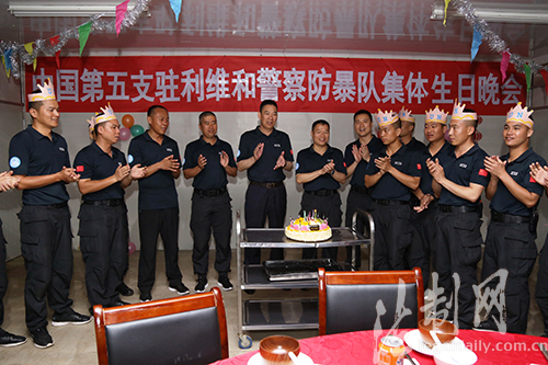 中國第五支駐利維和警察防暴隊舉辦首次集體生日晚會