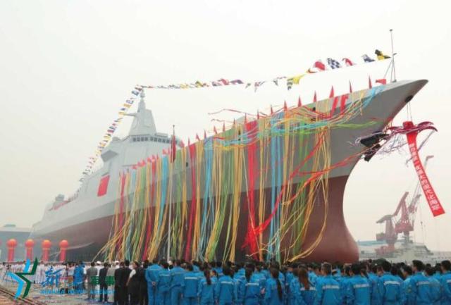中國海軍新型驅(qū)逐艦首艦下水儀式28日上午在上海江南造船(集團)有限責任公司舉行。這型驅(qū)逐艦是我國完全自主研制的新型萬噸級驅(qū)逐艦,先后突破了大型艦艇總體設計、信息集成、總裝建造等一系列關鍵技術,裝備有新型防空、反導、反艦、反潛武器,具有較強的信息感知、防空反導和對海打擊能力,是海軍實現(xiàn)戰(zhàn)略轉(zhuǎn)型發(fā)展的標志性戰(zhàn)艦。尹航 攝