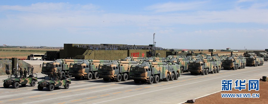 7月30日,慶祝中國人民解放軍建軍90周年閱兵在位于內蒙古的朱日和訓練基地舉行。中共中央總書記、國家主席、中央軍委主席習近平檢閱部隊并發表重要講話。這是核常兼備導彈方隊。新華社記者 查春明 攝