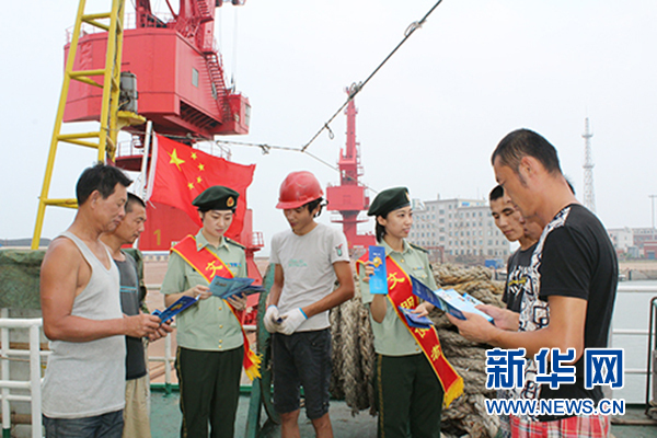 濰坊邊檢官兵正在向群眾發放宣傳冊。??????