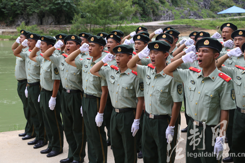 ????“我是中國人民武裝警察,我宣誓:服從中國共產黨的領導,全心全意為人民服務,服從命令,嚴守紀律……”近日,廣西邊防總隊百色邊防支隊組織40余名臨退老兵,來到中越邊境舉行向界碑告別儀式。