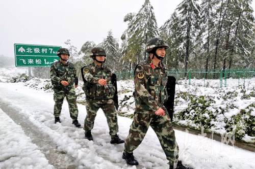 圖為北極邊防派出所官兵冒雪巡邏,防止外來游客及轄區群眾發生險情