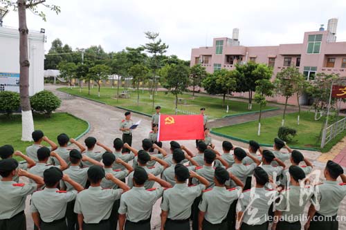 ????8月28日上午,廣西邊防總隊(duì)北海邊防支隊(duì)機(jī)動大隊(duì)42名臨退老兵面對黨旗再一次重溫入伍誓詞,感悟軍人的忠誠與責(zé)任、邊防戰(zhàn)士的自豪與驕傲。