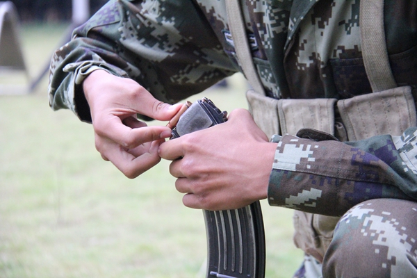 ????射擊場(chǎng)上,隨著指揮員一聲令下,新兵分批次領(lǐng)取實(shí)彈奔向射擊地線、臥姿裝彈、據(jù)槍瞄準(zhǔn),動(dòng)作干脆利落。 “一號(hào)靶42環(huán),二號(hào)靶48環(huán)、三號(hào)靶……”報(bào)靶員通過(guò)對(duì)講機(jī)向記錄員如實(shí)報(bào)告。經(jīng)最后成績(jī)統(tǒng)計(jì),這個(gè)新訓(xùn)團(tuán)廣西籍新兵唐美飛在考核中取得了步槍精度射擊5發(fā)子彈49環(huán)的最好成績(jī),他興奮說(shuō)道:“我打了49環(huán),主要是我們班長(zhǎng)教的好,我會(huì)加倍努力,不辜負(fù)班長(zhǎng)對(duì)我們的嚴(yán)格要求?!保惥待垼?/p>
