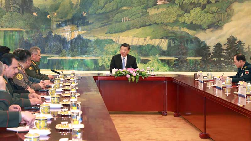 ????習近平表示,上海合作組織各成員國防務部門和軍隊認真貫徹元首共識,不斷完善防務部門和軍隊領導會議機制,積極開展各領域互利合作,特別是打造了“和平使命”系列軍事演習、“和平號角”軍樂節等軍事文化品牌,為維護地區安全穩定作出了積極貢獻。