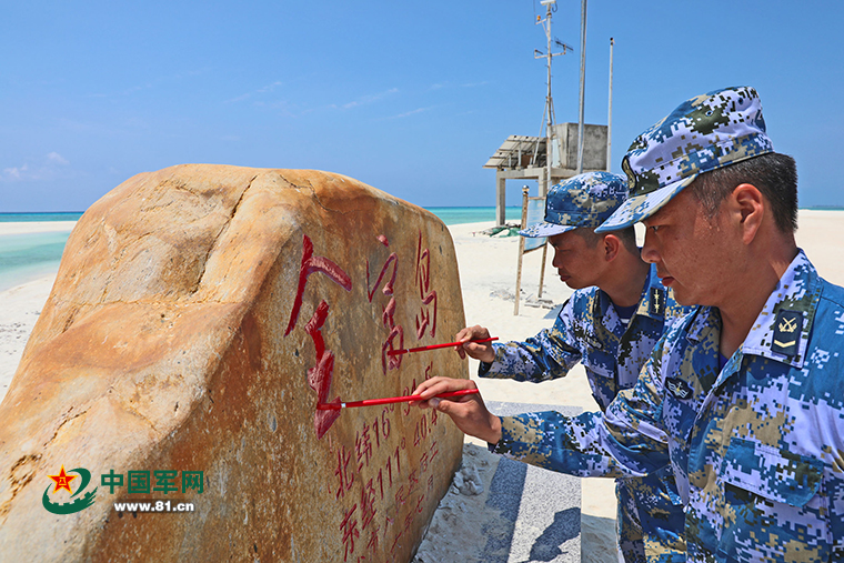 在全富島,關建軍和三沙市副市長陳儒茂帶頭描摹主權碑上“中國”兩個大字。“每描一筆,都感到神圣無比,建設強大穩固的現代邊海空防,共同守護好我們的祖宗海,離不開軍地協力。扛起這一如山使命,我們責無旁貸!”關建軍的話語擲地有聲。特約記者 薛成清 通訊員 盆世舟 潘新新