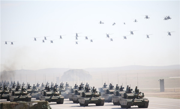 ????2017年7月30日,慶祝中國人民解放軍建軍90周年閱兵在位于內(nèi)蒙古的朱日和訓練基地舉行。新華社記者 查春明 攝