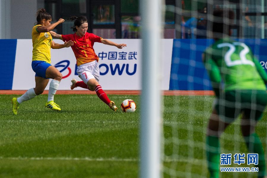 10月24日,中國隊球員劉艷秋(中)在比賽中突破傳球。 當(dāng)日,在武漢舉行的第七屆世界軍人運動會女子足球半決賽中,中國隊以2比1戰(zhàn)勝巴西隊,晉級決賽。 新華社記者劉金海攝