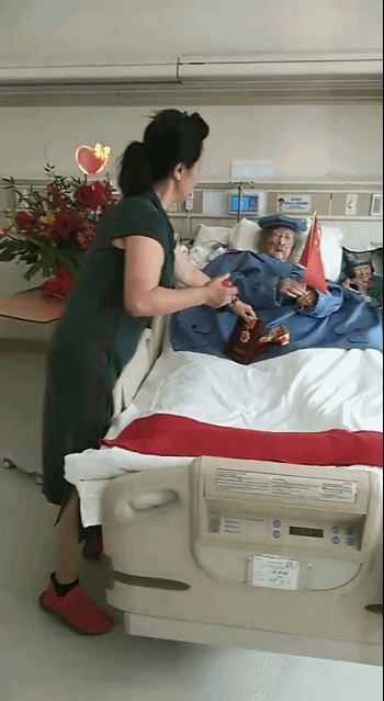 2019年10月1日,中華人民共和國迎來七十華誕。素來了解老人心思的陽瓊仙,專門帶了兩面國旗到病房里。閱兵開始后,滿頭銀發的王定國半躺在病床上,一手拿一面旗,隨著軍樂的節奏來回揮舞,累了,歇一下,又接著揮,仿佛自己正身處天安門廣場熱情歡呼的人群中。