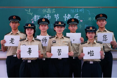 一身戎装,淬火成钢,您扎根三尺讲台;一颗初心,铸魂育人,您以行动教会我们忠诚与卓越,诠释责任与担当。军旅人生路,有幸遇良师。教师节来临之际,我们向您致以最崇高的敬意,真心地祝愿您节日快乐,桃李万千!