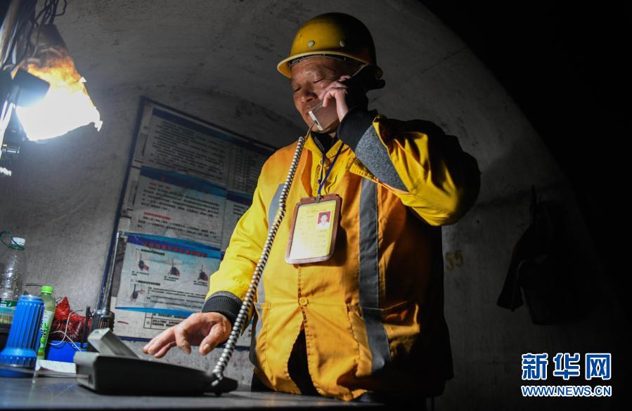 看守工廖成根在鄧山隧道內通過電話匯報當日班次的情況(1月30日攝)。