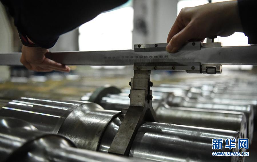 2月1日,柳州車輛段車輪車間質量檢查員在測量輪對軸間距。新華社記者 張愛林 攝