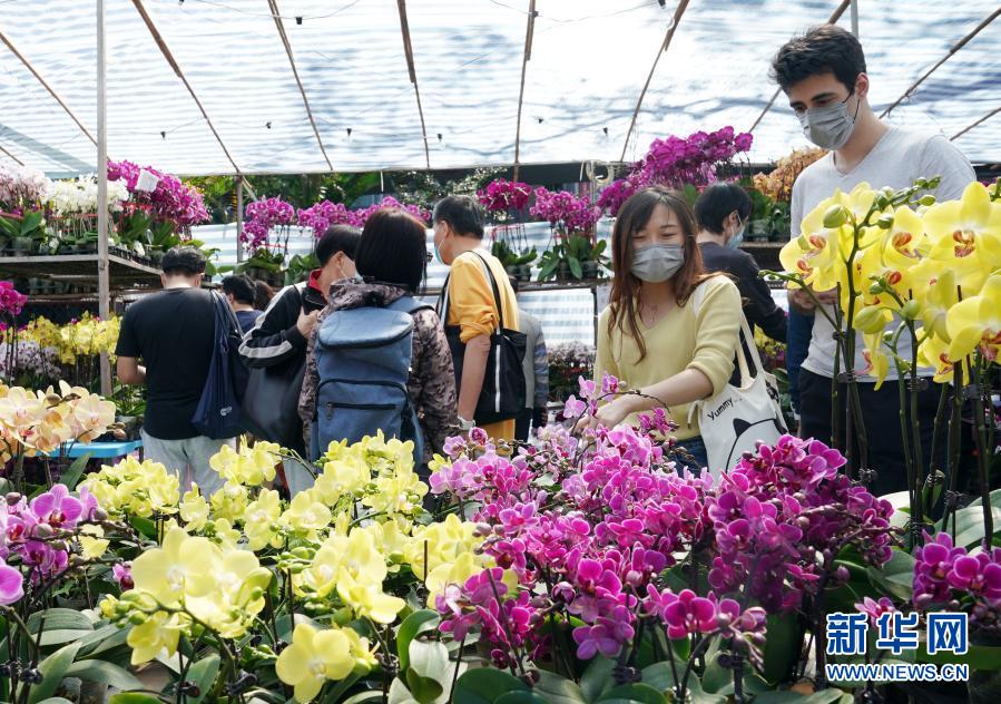 2月6日,市民在香港維多利亞公園的年花銷售點選購鮮花。