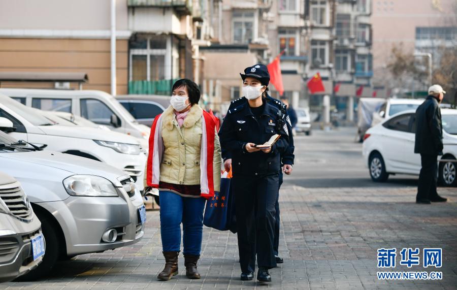 2月11日,在天津市紅橋區(qū)隆春里社區(qū),楊曉惠(右)與隆春里社區(qū)居委會(huì)網(wǎng)格員劉志鑫(左)聯(lián)合巡邏,查看小區(qū)安防情況。新華社發(fā)(孫凡越攝)