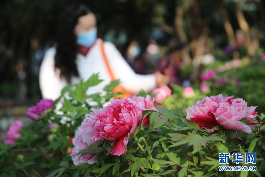 2月14日,游客在昆明市大觀公園觀賞盛開的牡丹。新華社發(fā)(梁志強(qiáng) 攝)