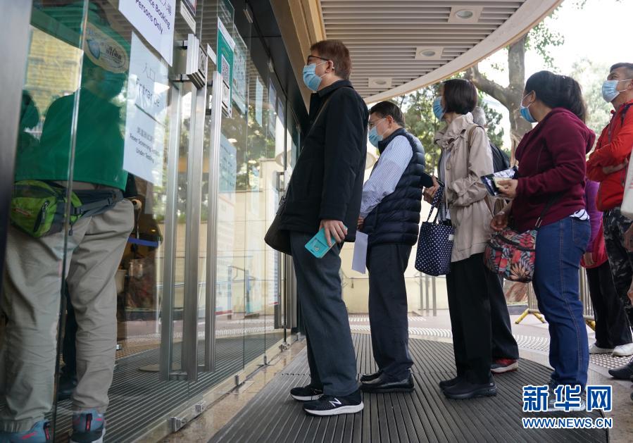 2月26日,在位于香港中央圖書館的社區疫苗接種中心,市民在入口處排隊。新華社記者 王申 攝