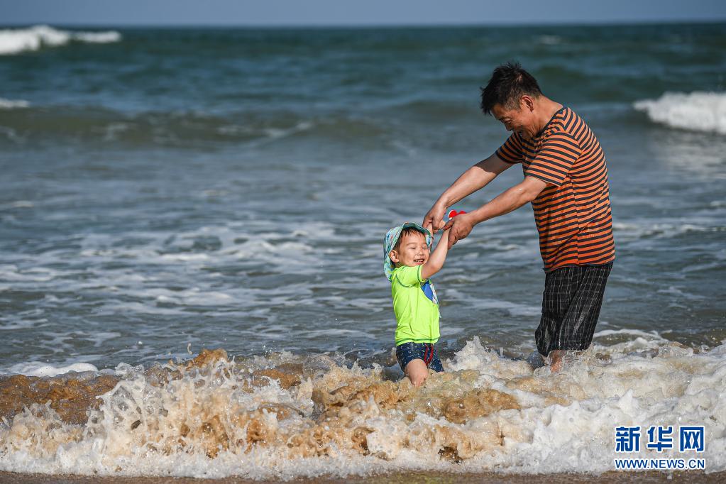4月8日,游客在海南博鰲鎮海灘游玩。