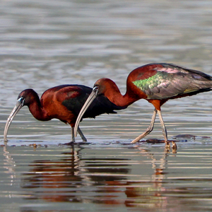彩鹮在福建省霞浦縣福寧灣灘涂覓食(4月17日攝)。一對彩鹮近日現身福建省霞浦縣福寧灣灘涂的視頻,經當地媒體播發后引起轟動,各地攝影師及當地生態保護志愿者紛至沓來,一睹它們的“芳容”。新華社記者 梅永存攝