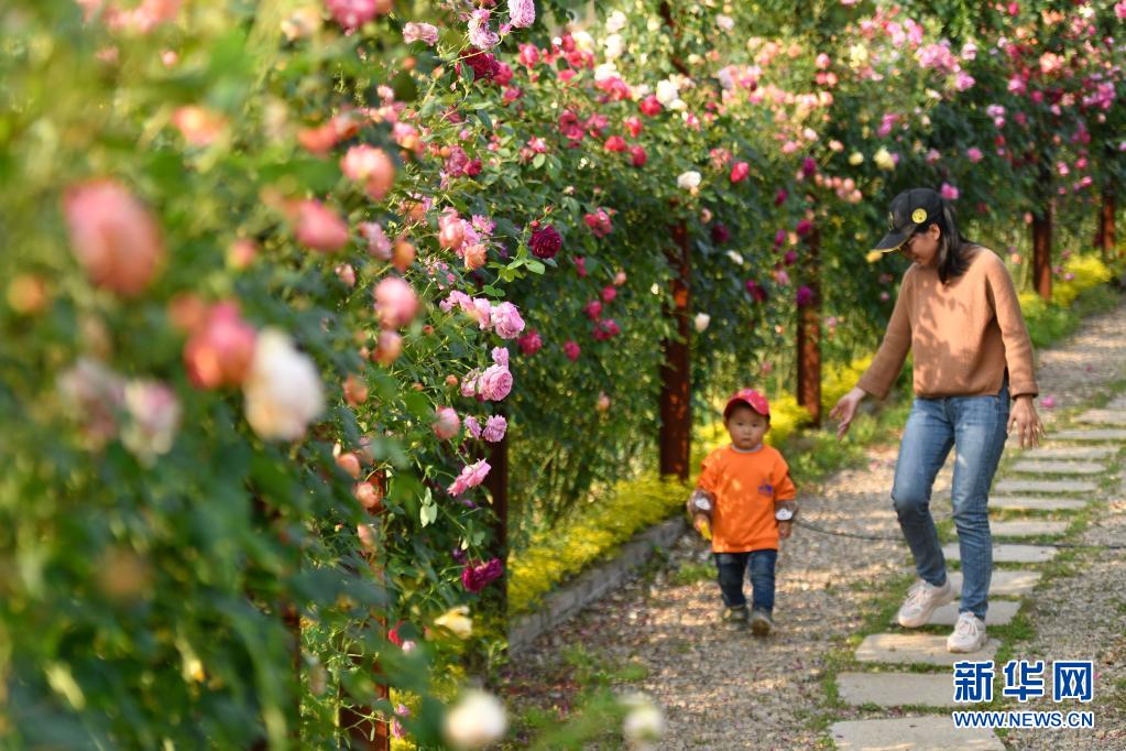 5月2日,游客在浙江湖州吳興區埭溪鎮莫家柵村四季玫瑰莊園內游玩。新華社記者 黃宗治 攝
