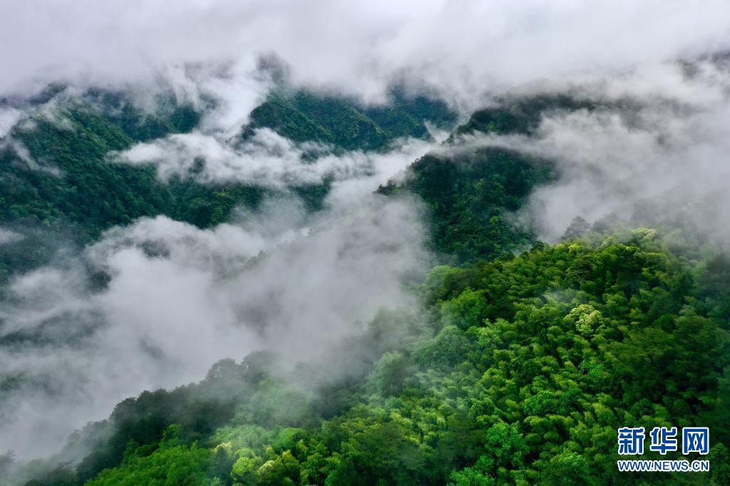 5月17日,武夷山國家公園桐木村附近群山云霧繚繞(無人機照片)。