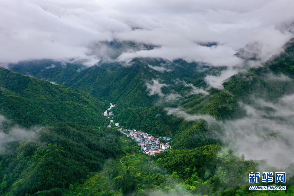 5月17日,武夷山國家公園桐木村附近群山云霧繚繞(無人機(jī)照片)。