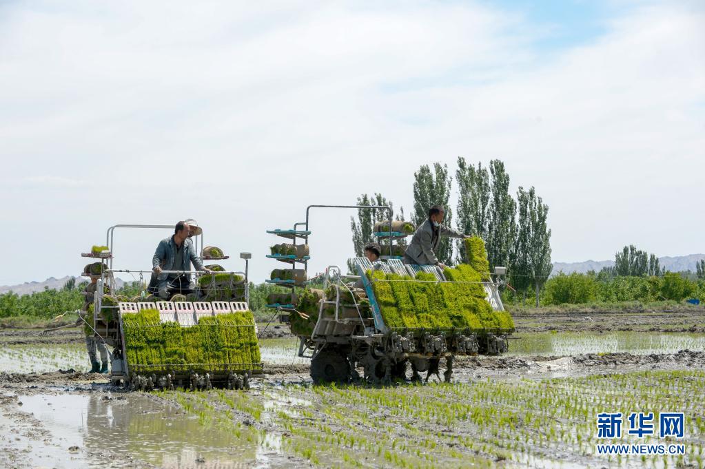 進入5月,新疆溫宿縣的11萬余畝水稻進入插秧期。稻田間,插秧機往來穿梭,一片繁忙景象。