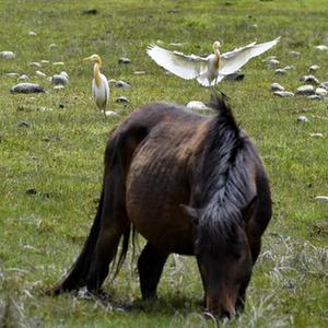 5月23日,牛背鷺在易貢國家地質公園棲息。